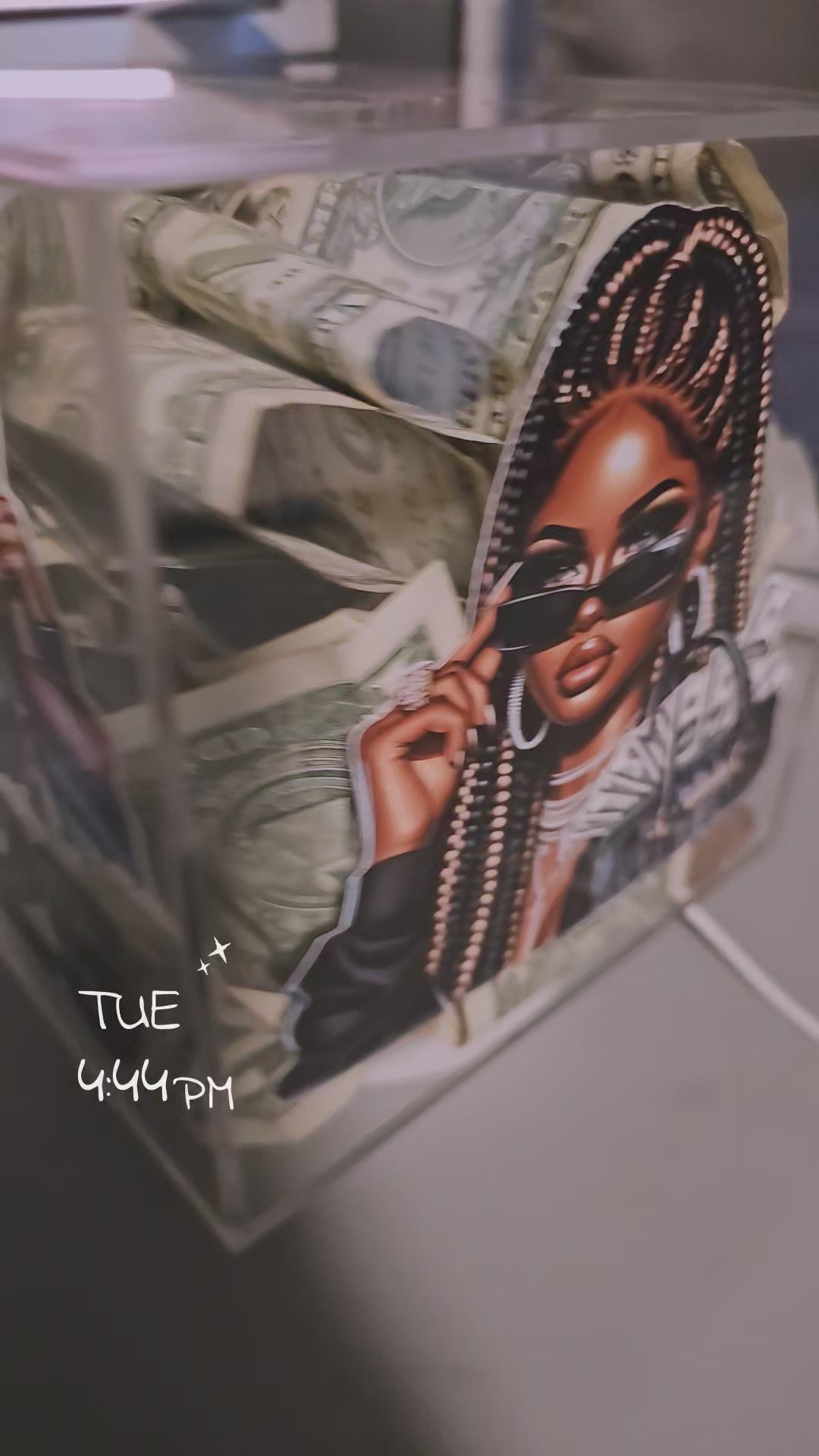 Customized smash box. Excellent for saving money. Box must be smashed open to retrieve money.