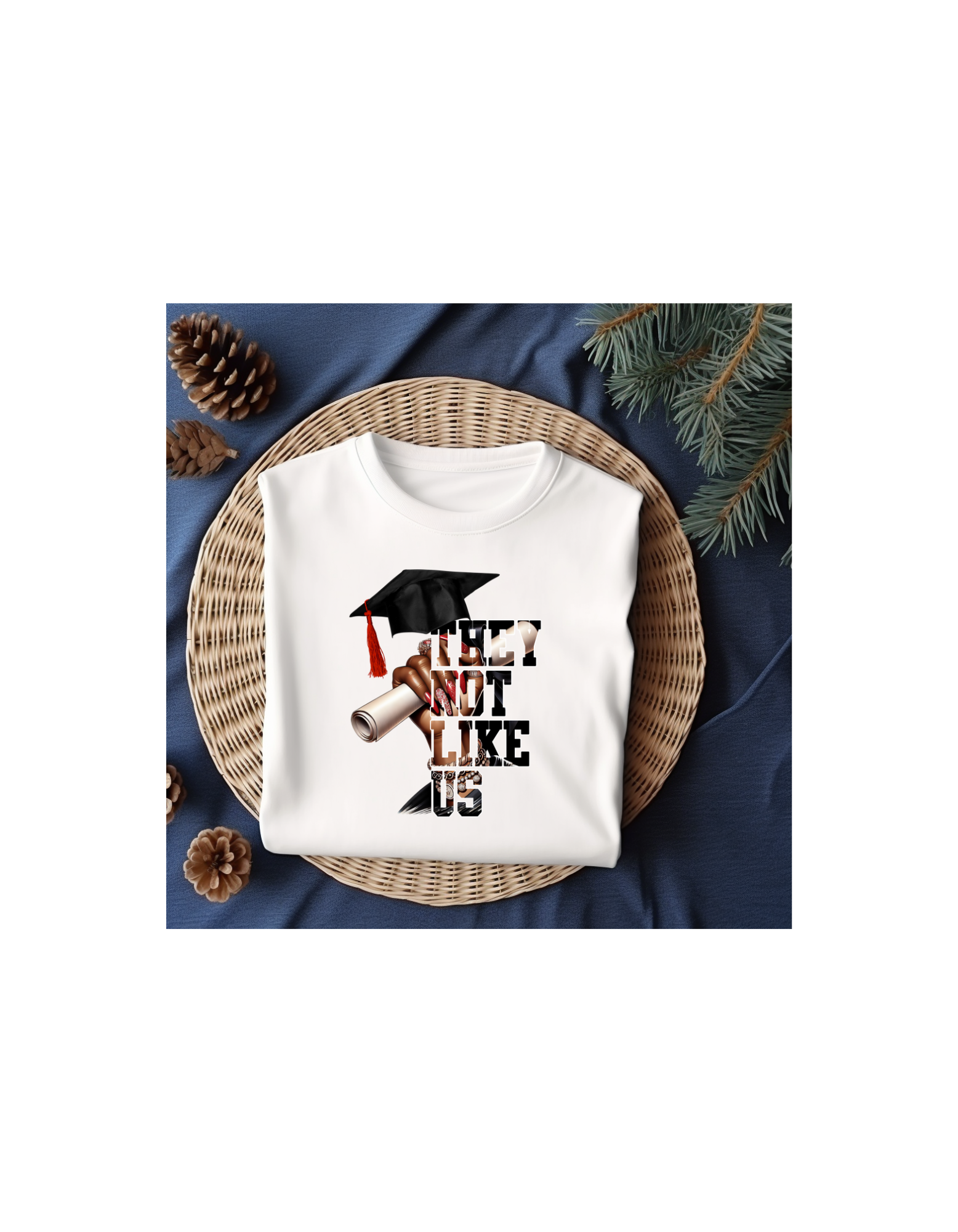 Celebrate your unique style with the THEY NOT LIKE US GRADUATION t-shirt. Show off your individuality and stand out from the crowd with this bold and empowering design. Perfect for graduates who dare to be different.