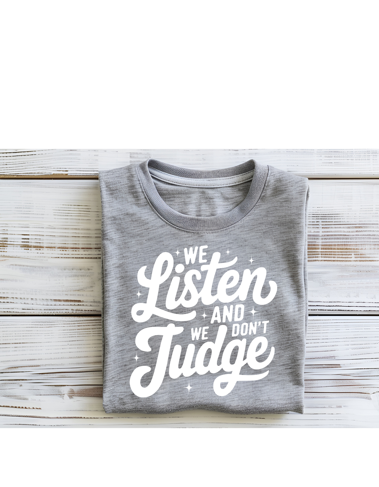 Say what you need to say without fear of judgment with WE LISTEN WE DON'T JUDGE. Our product offers a non-judgmental listening experience, providing a safe space for you to express yourself. Speak up and be heard with WE LISTEN WE DON'T JUDGE.